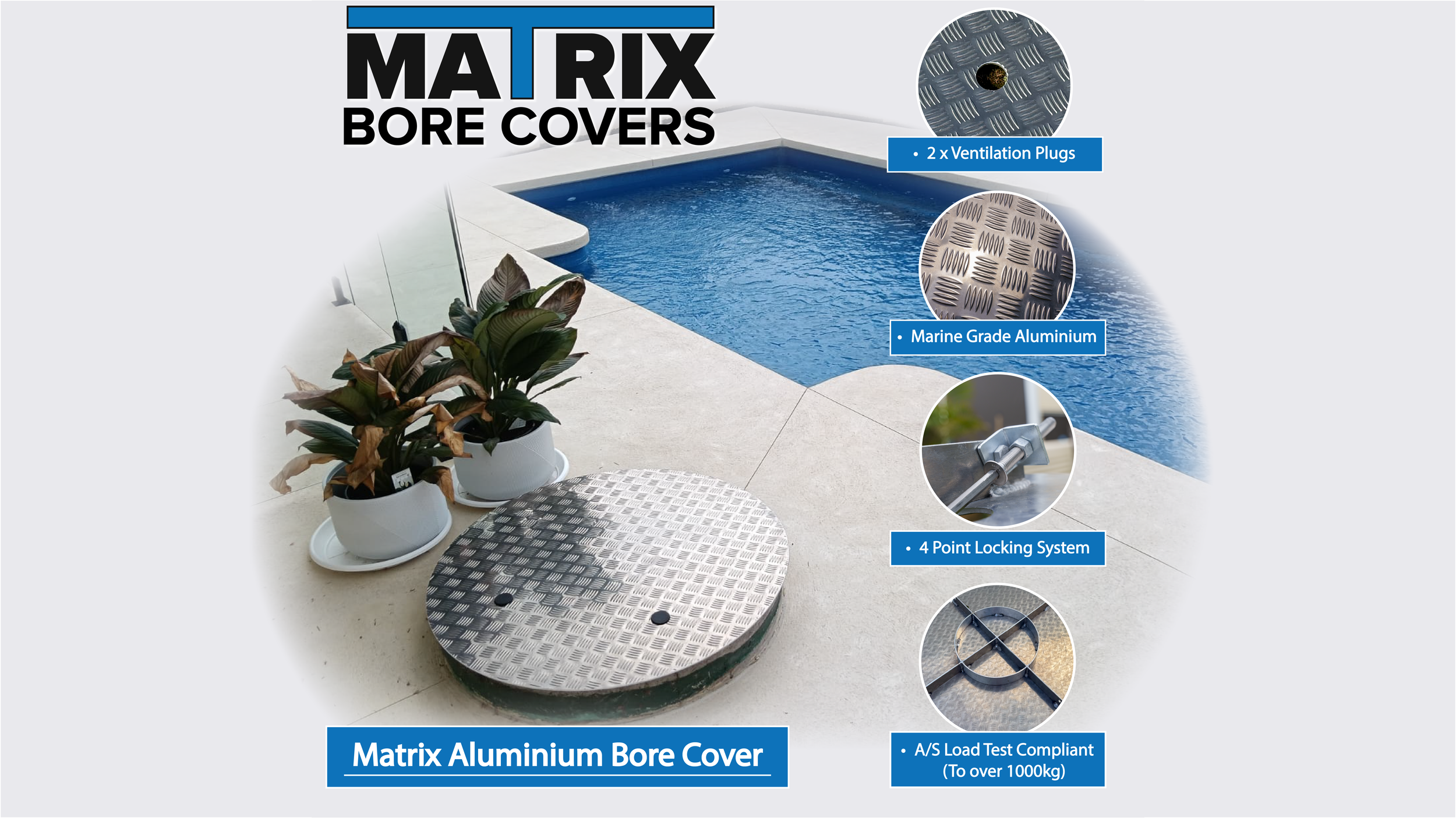 Matrix Bore Covers is a Western Australian family-owned and operated business providing durable, lockable, and fully recyclable poly bore covers and flat aluminium pedestrian bore covers.